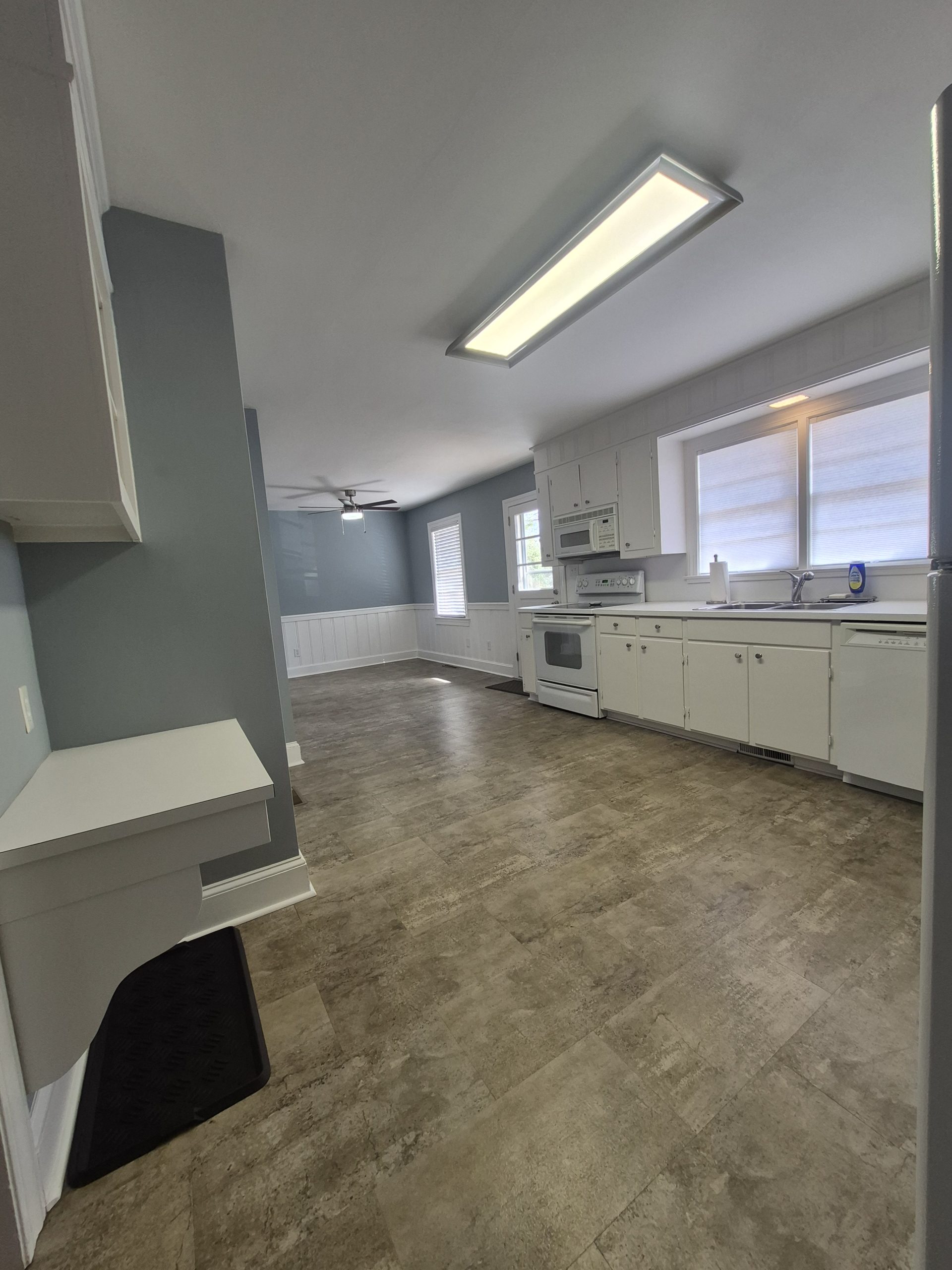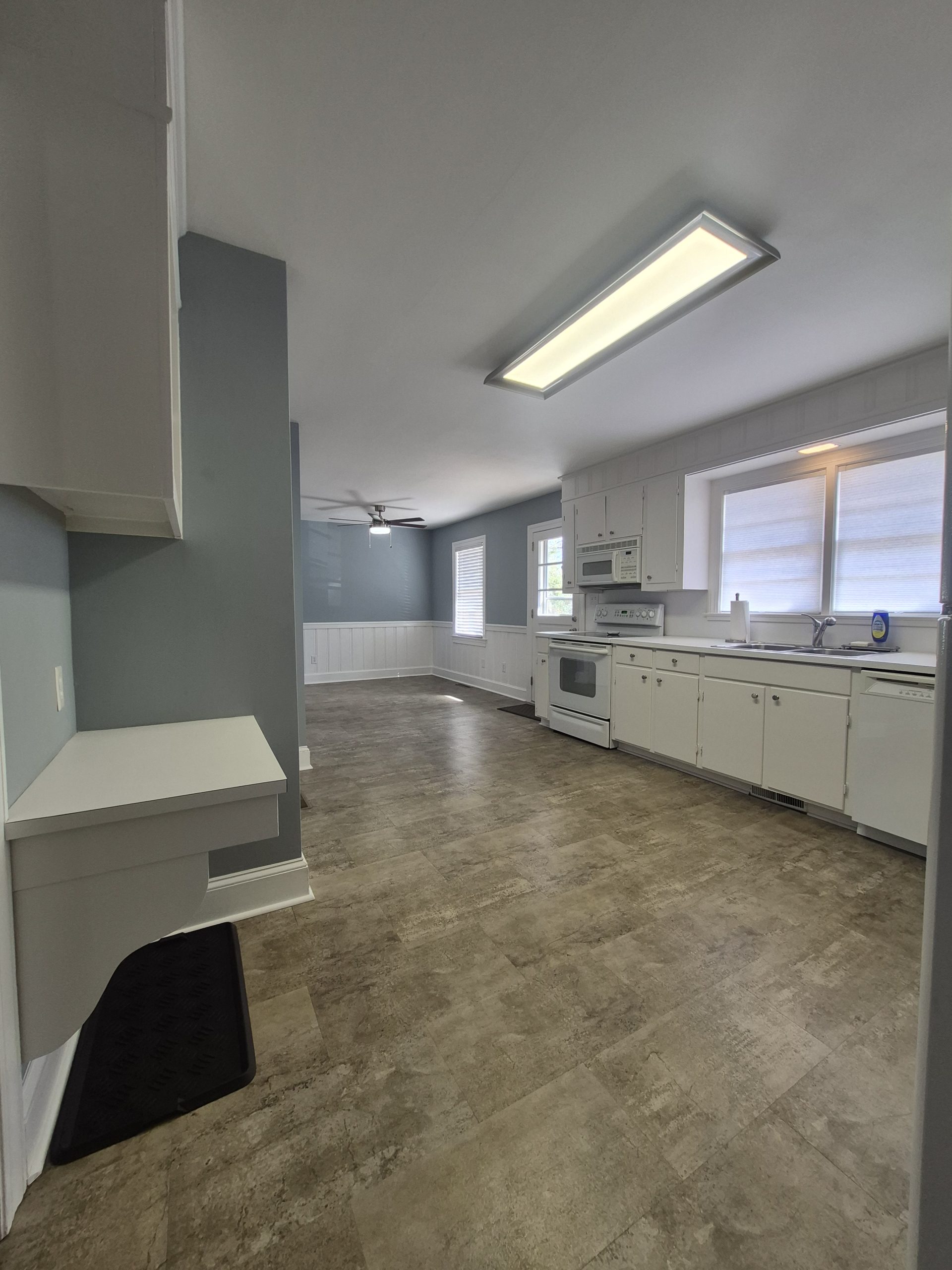 Spacious 3-bedroom 1.5 bath home located on Elm st. in the heart of Greenville. It's very convenient to ECU or a wonderful location for a family wanting lots of space. Beautiful hardwood flooring throughout & vinyl flooring in the kitchen & baths. Large living room featuring built in shelving & a wraparound floor plan for the common areas. Spacious kitchen with lots of wrap around cabinets. Comes with fridge, stove, dishwasher & over the range mounted microwave. 3 spacious bedrooms, with a private 1/2 bath located in the main bedroom. Freshly upgraded full bath in the hall. This home sits on a corner lot featuring a paved 2-way driveway access for convenience. Attached covered carport parking & additional side parking available. Lawncare provided for this large lawn that also has a portion of the back yard fenced in. This home is fresh on the rental market, Move-in Ready & definitely won't last long! Lock in now! Home has central air and gas heat.